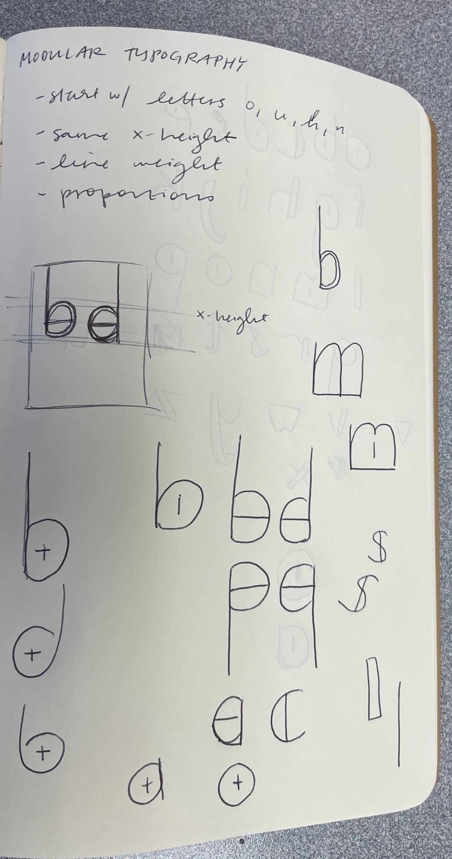 A typeface creation. by Abby Bennett. A modular typeface is an alphabet constructed out of a limited number of shapes or modules. Mood board & Sketches Finished Typeface Poster Design Finished Poster As seen on campus: